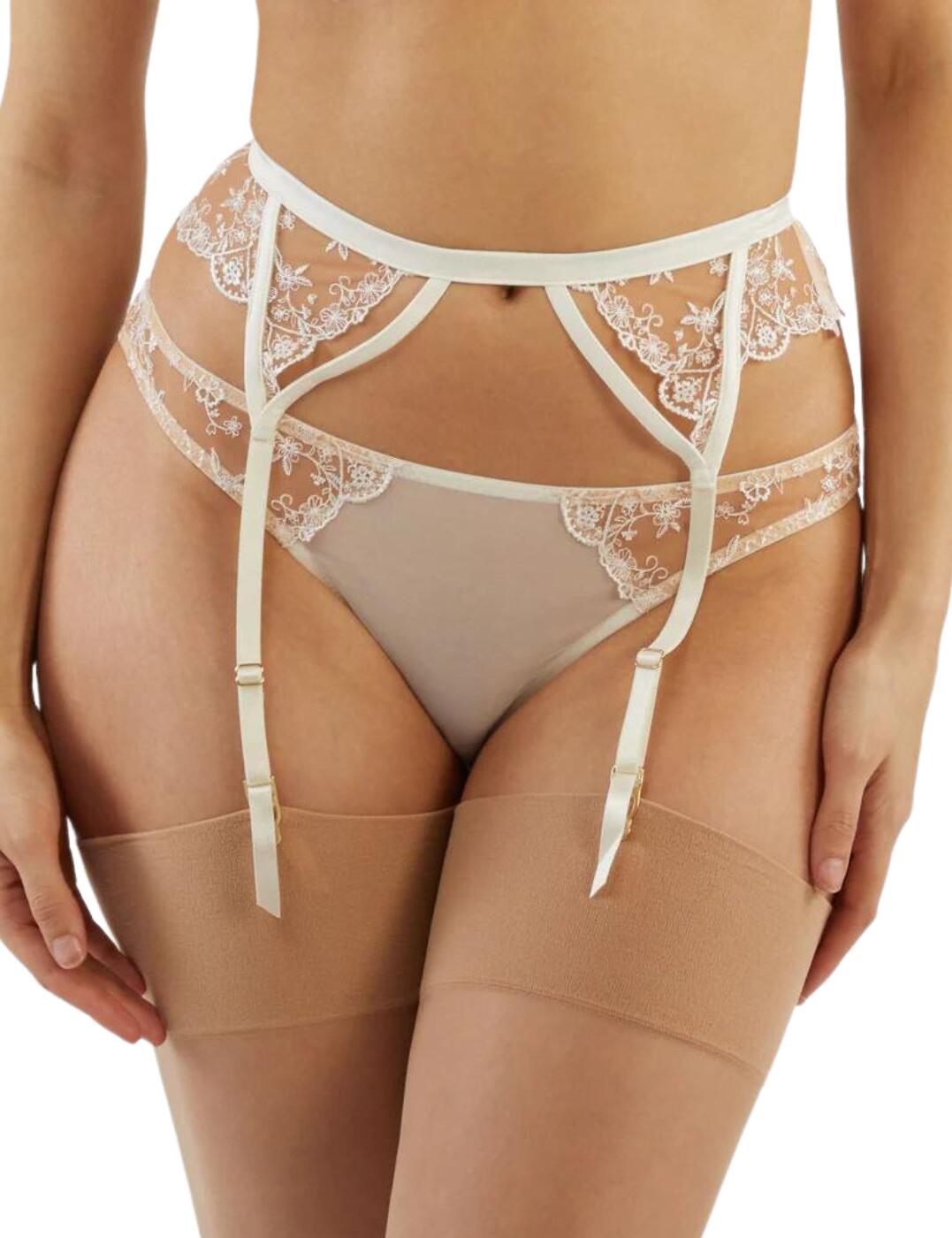 Playful Promises Womens Ellery Classic Pale Rose Lace Suspender Belt – White – Size 20 UK