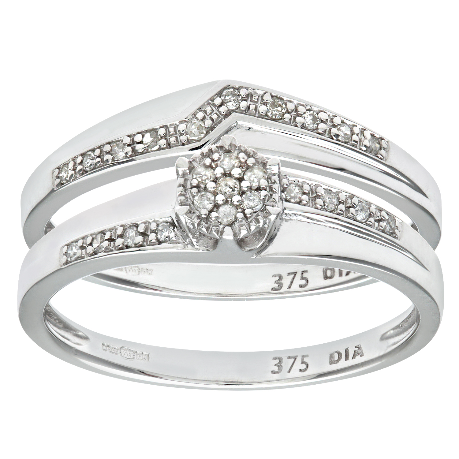 Diamant L’Eternel Womens 9ct White Gold 0.07ct Diamond Bridal Set Cluster Ring – Size J