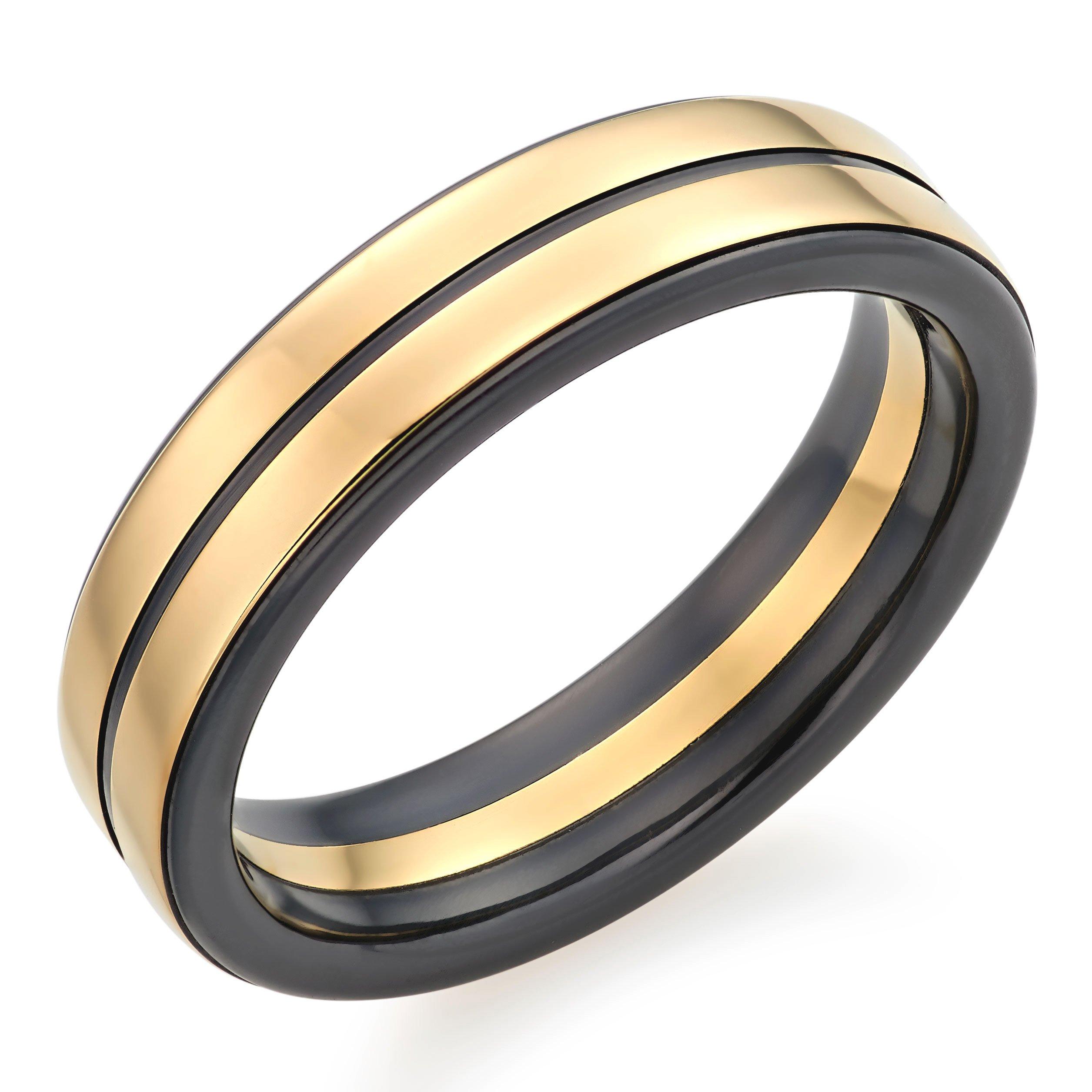 The contrast of gold against zirconium gives this 18ct Gold and Zirconium Men’s Wedding Ring a cool and contemporary feel. The combination of classic design with a modern twist and durable materials that offer great wearability, have created a ring you will treasure forever.At A Glance Crafted in 18ct gold and zirconium Hypoallergenic Scratch-resistant Polished finish 5.5mm band