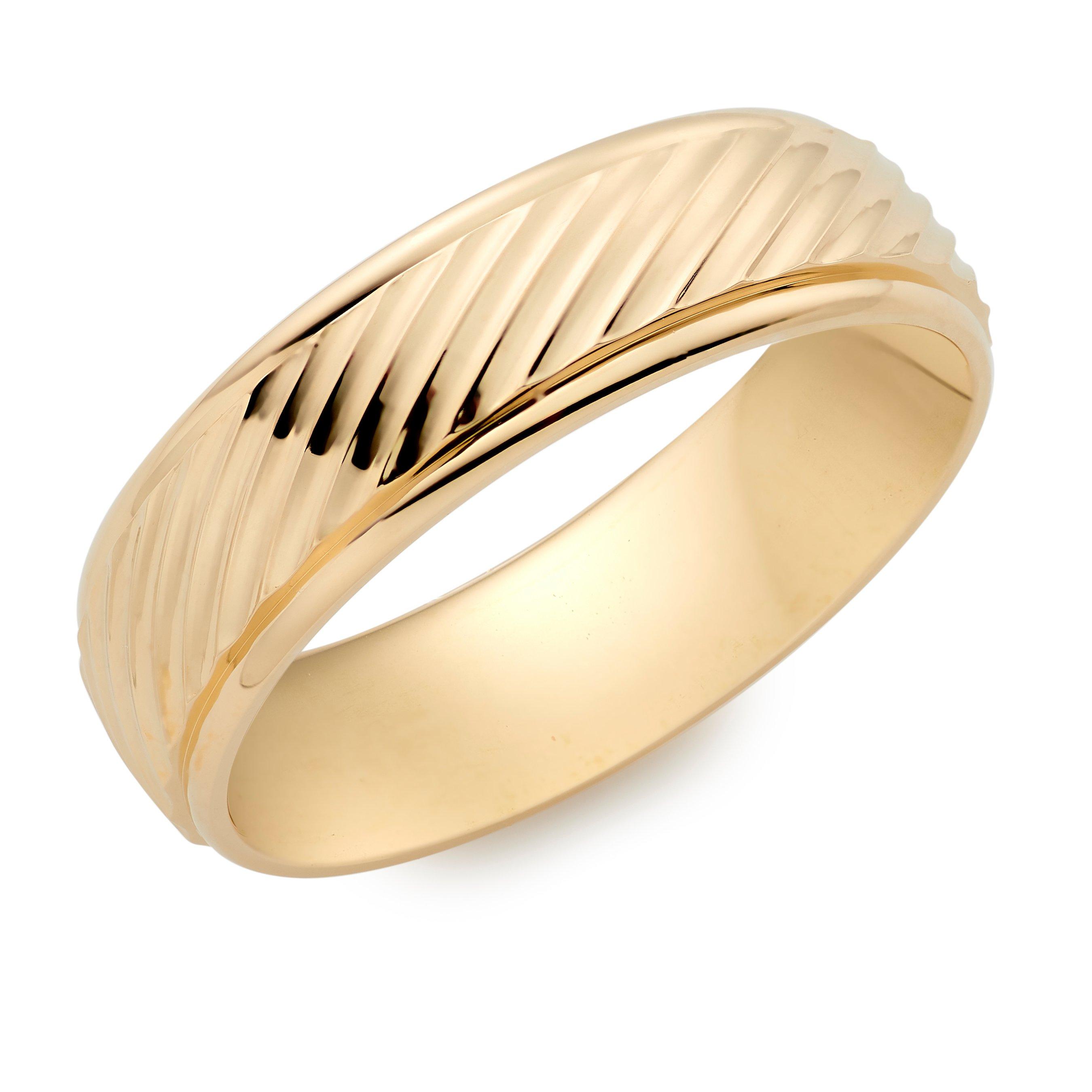 Celebrate your everlasting bond with this 9ct Yellow Gold Men’s Wedding Ring. A timeless expression of your eternal love, this classic yet modern design seamlessly blends tradition with style. At A Glance Crafted in 9ct yellow gold Textured design Ring width – 6mm