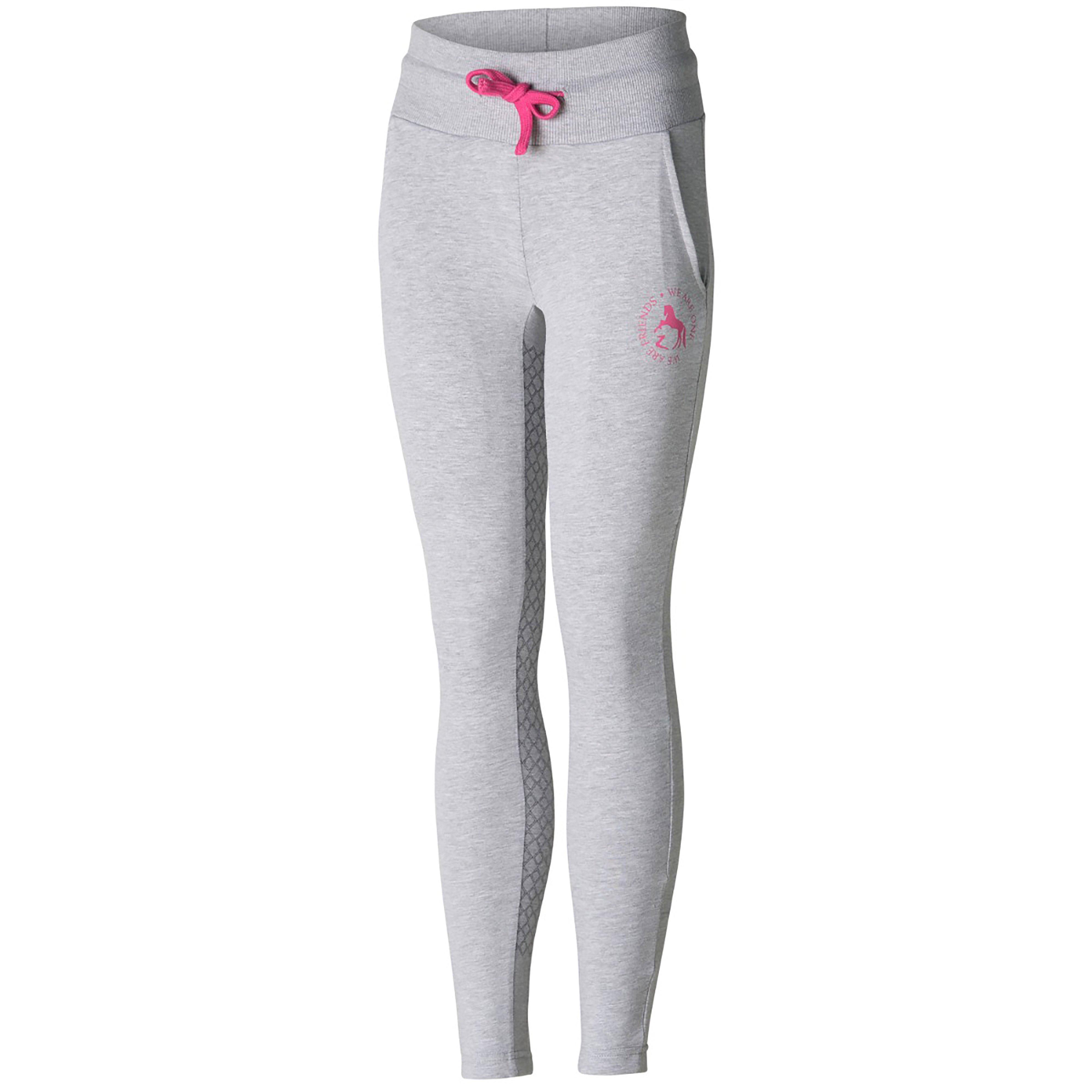 Horze Childs Elinor Cotton Stretch Tights Ash Grey. The Elinor Tights are suitable for everyday riding. Designed with comfort in mind the lightweight tights are crafted from a stretchy cotton fabric which is super elastic with a brushed soft material on the inside to keep you warm on those colder days. The Elinor Tights feature a full silicone seat giving you great grip in the saddle, two front pockets ideal for keeping your phone safe and a high waist with drawstrings to prevent them from sliding down.