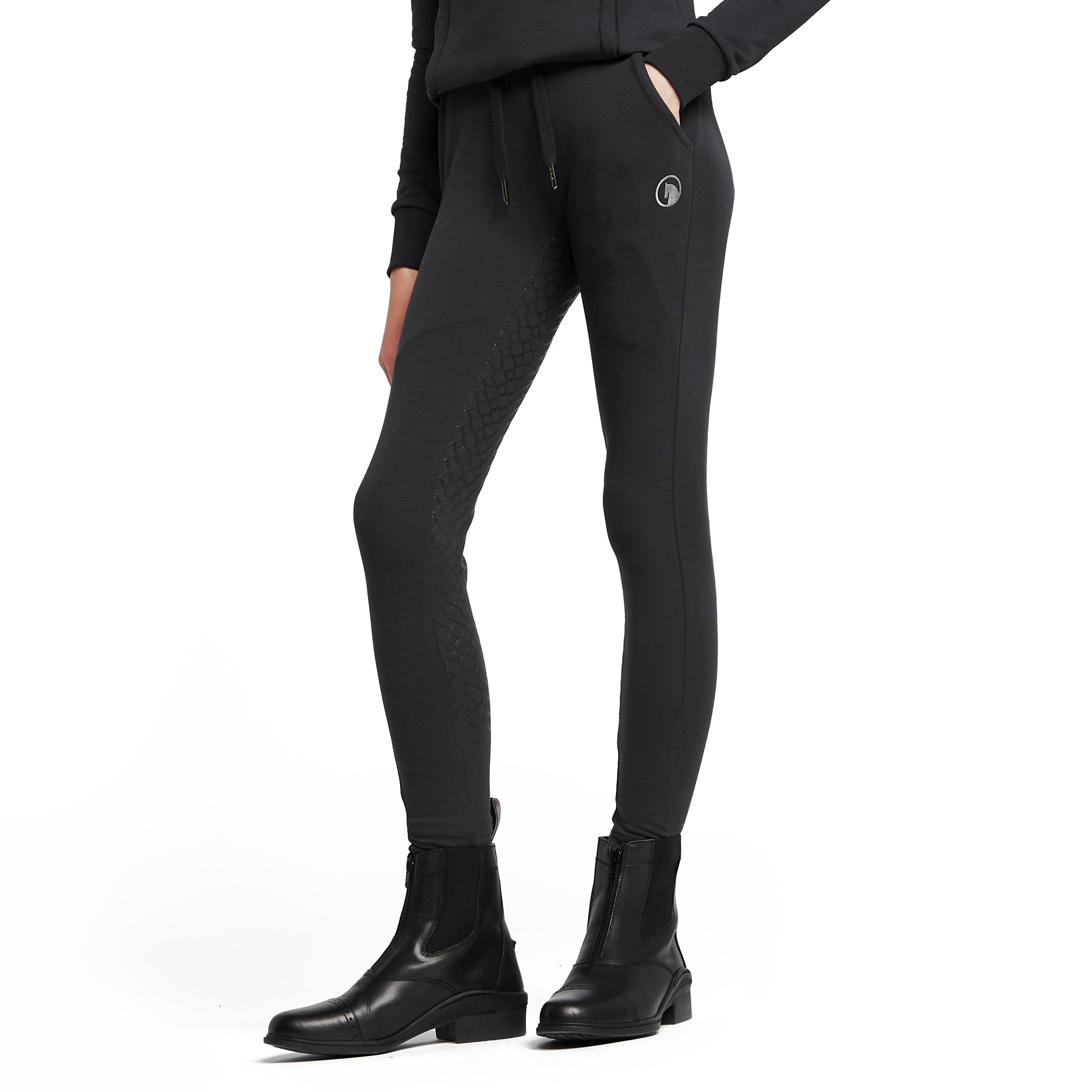 Horze Childs Organic Emmie Cotton Silicone Full Seat Riding Tights Dark Navy. The Horze Organic Emmie Cotton Silicone Full Seat Riding Tights are set to expand the Horze sustainable collection, it lets you ride in good conscience. The Emmie Full Seat Riding Tights are crafted from super soft organic cotton which is sure to keep you warm and comfortable when training. They feature big pockets which will fit your phone and keys, a high waist with ribbed waistband which can be adjusted with a draw string for the perfect fit, a silicone full seat to keep little riders safely in the saddle and a Horze logo at the hip. Pair the Emmie Riding Tight with the Horze Emmie organic cotton sweatshirt for a full matching look!