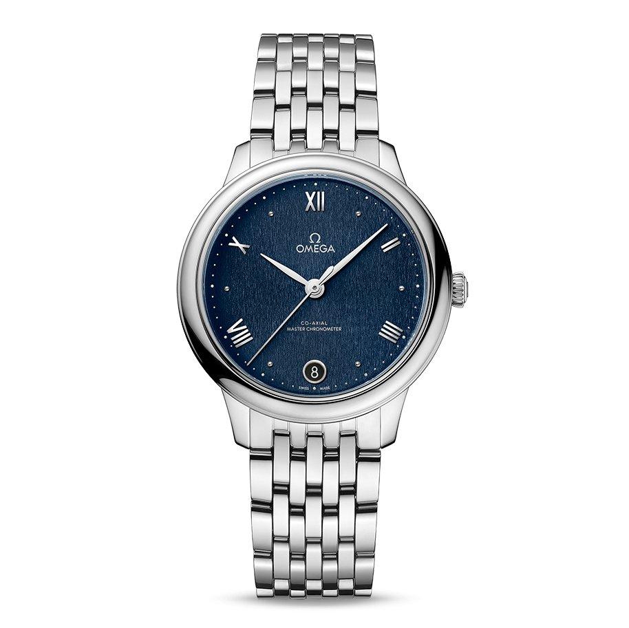 This Omega De Ville Prestige Co-Axial Master Chronometer Ladies Watch is part of the third generation of the De Ville collection first introduced in 1994. Featuring a PVD blue dial with a sun-brushed finish with rhodium-plated hands and roman numerals creating a durable yet fashionable timepiece. At A Glance Presented on a stainless steel bracelet fastened with a butterfly clasp 34mm stainless steel case with 30m water resistance PVD Blue dial with silver-toned hands Scratch resistant sapphire crystal glass with anti-reflective coating Date window at 6 o’clock Powered by an Automatic movement