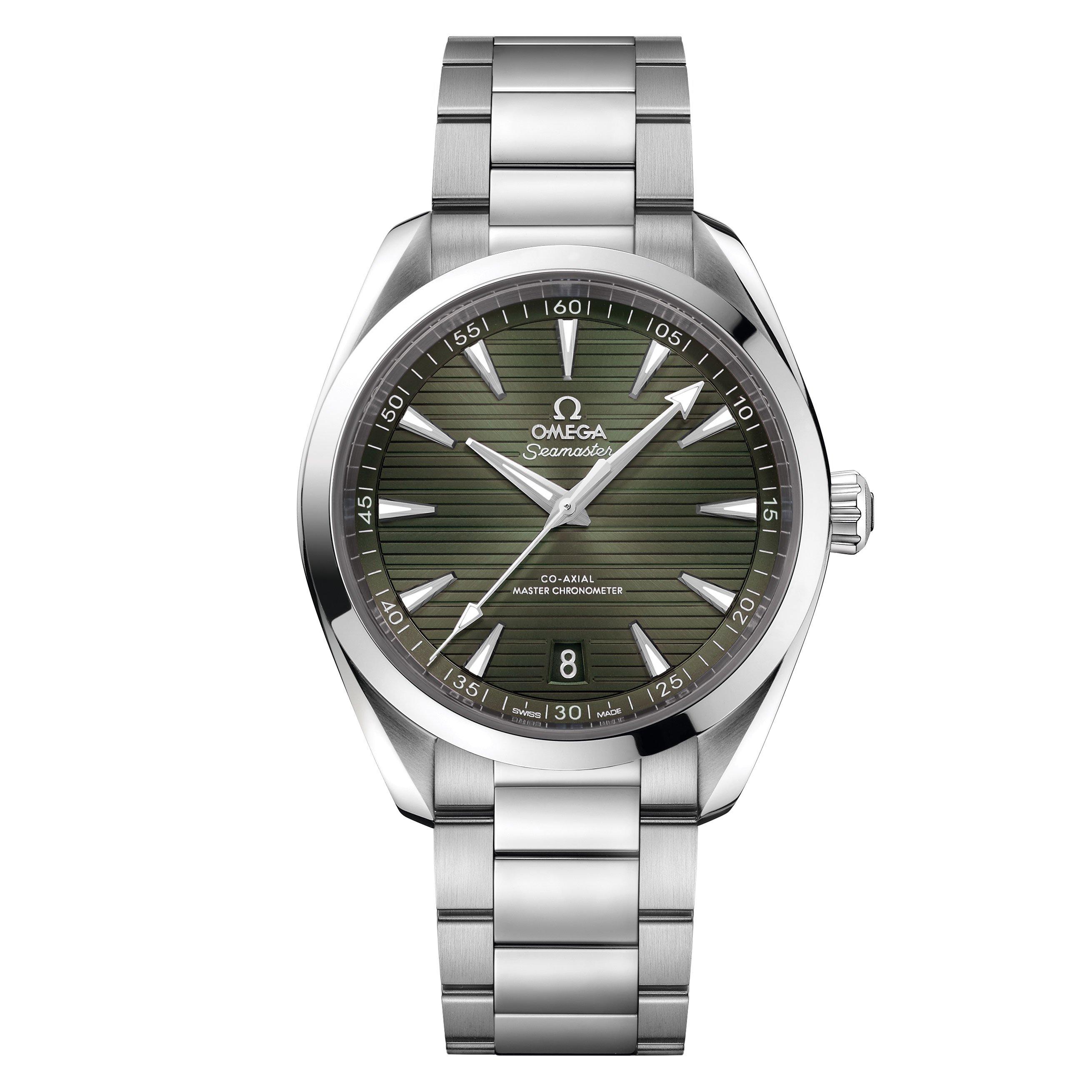 Paying homage to OMEGA’s rich maritime heritage, this OMEGA Seamaster Aqua Terra 150m Master Chronometer Automatic Men’s Watch has a distinguished horizontal ‘teak’ pattern which is inspired by the wooden decks of luxury sailboats. At A Glance Presented on a stainless steel bracelet 41mm case size with 150m water resistance Green sun brushed dial with horizontal ‘teak’ pattern Baton hour markers with date window at 6 o’clock Scratch resistant sapphire crystal glass with anti-reflective treatment on both sides Anti-magnetic Powered by the Swiss OMEGA Master Chronometer calibre 8900 automatic movement Power reserve of 60 hours