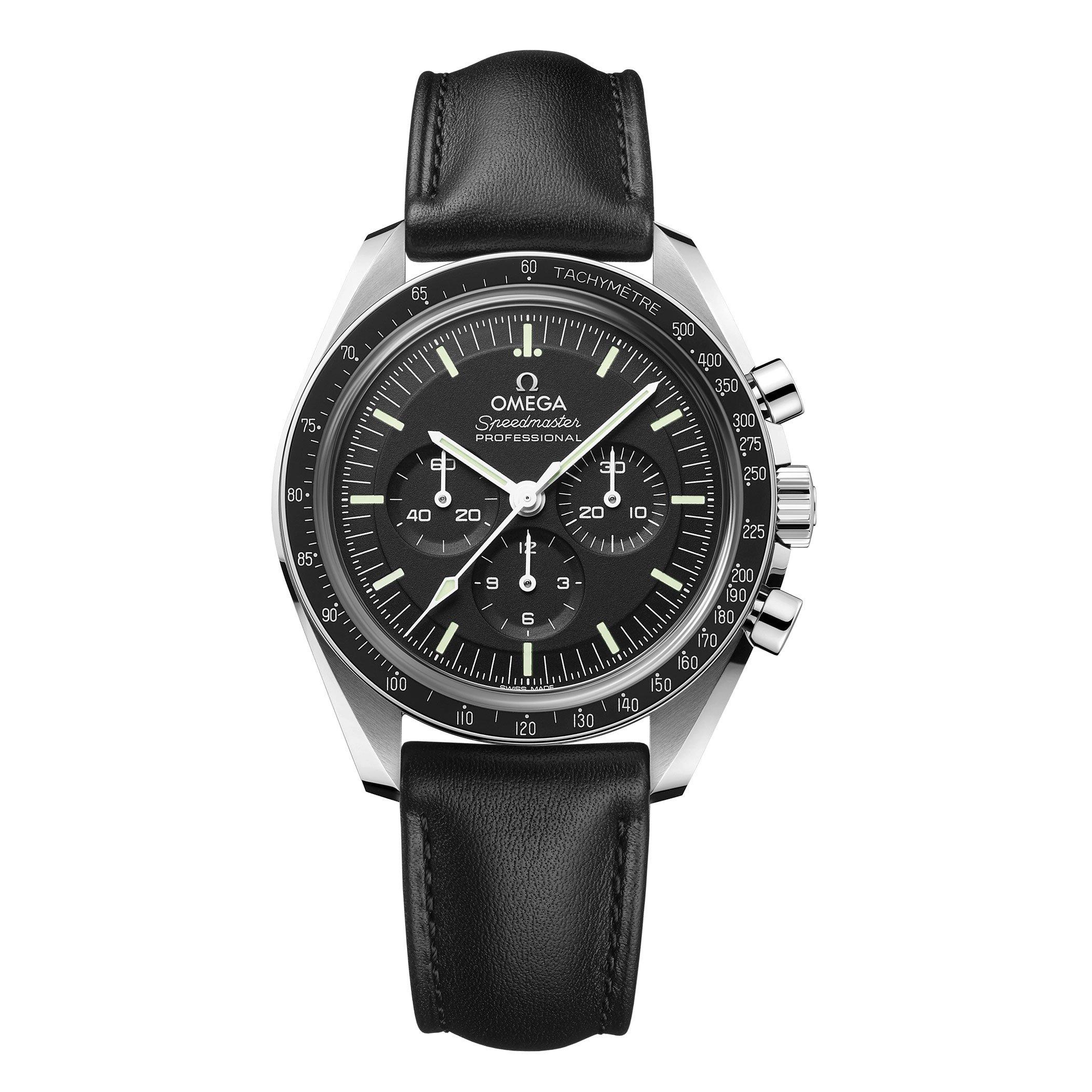 Inspired by the 4th generation Speedmaster style worn on the moon, this new OMEGA Speedmaster Moonwatch Professional Co-Axial Master Chronometer Chronograph Mens Watch is now Master Chronometer Certified with the highest standard of precision, performance and magnetic-resistance in the Swiss watch industry, making it one of the worlds most iconic timepieces. At A Glance Presented on a black leather strap with polished clasp and OMEGA logo on a satin-finished cover 42mm case size with 50m water resistance Asymmetrical case, black step dial and the famous dot over 90 on the anodised aluminium bezel ring Small seconds sub-dial, 30-minute recorder and 12-hour recorder Sapphire glass on the front and case back Powered by the OMEGA Co-Axial Master Chronometer Calibre 3861 movement Anti-magnetic to 15,000 gauss Power reserve of 50 hours