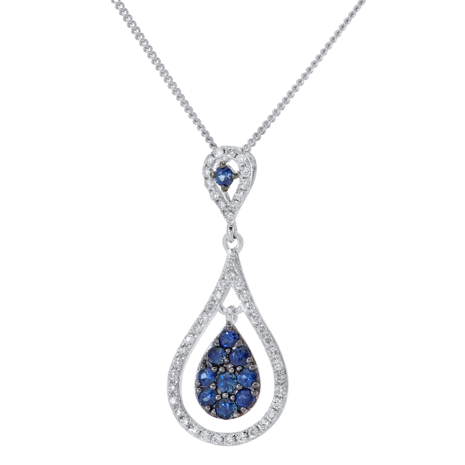 Sapphire & Black Diamond Lilibet Signature Halo Pendant Necklace in 9ct Gold