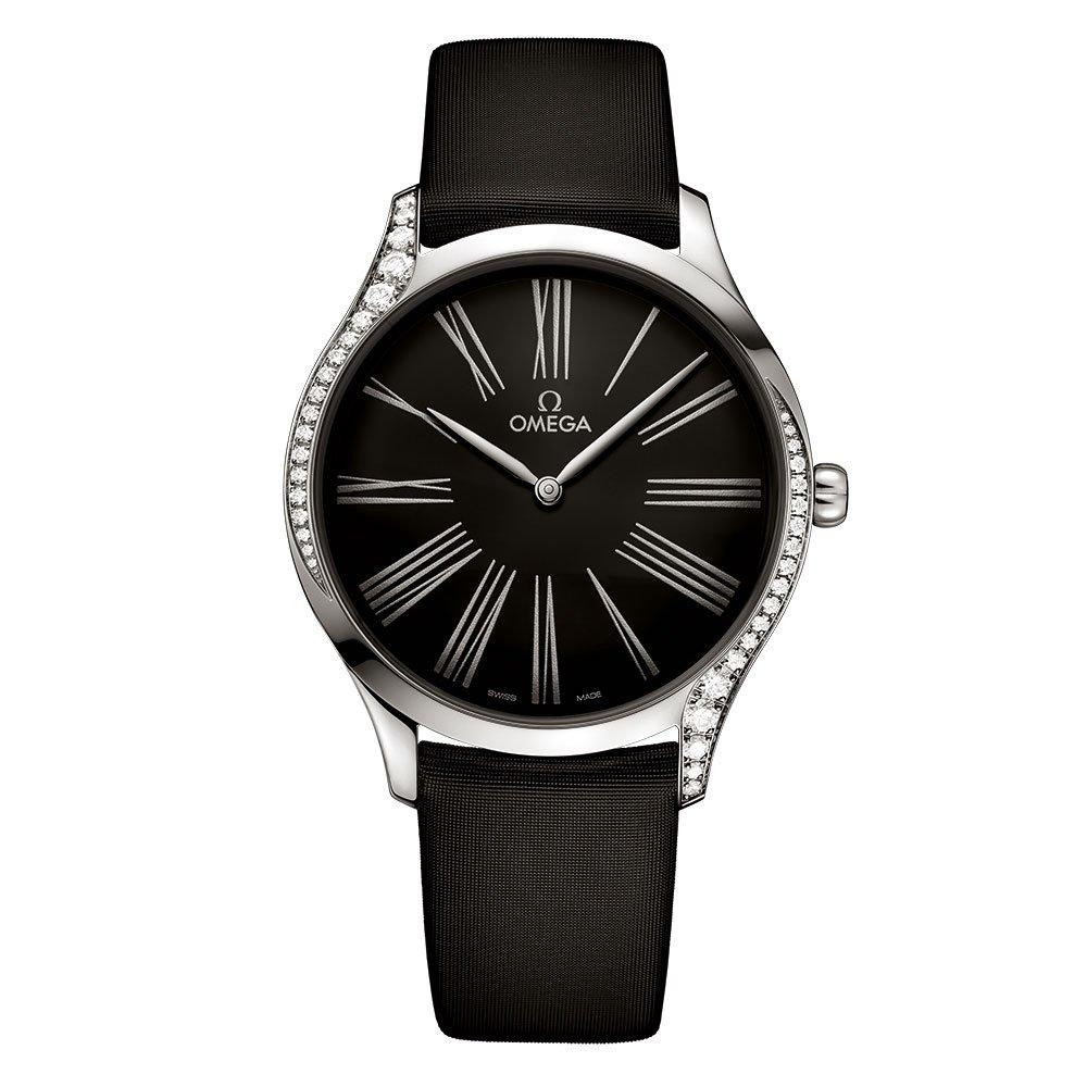 Just right for when only a bit of vintage glamour will do, this beautiful Pre-Owned OMEGA De Ville Tresor is the most stunning way to add a touch of sparkle to every look. At A Glance Although the condition of our pre-owned watches meets our strict standards, please note this timepiece may have slight defects or imperfectionsAll our pre-owned watches have undergone a thorough health check to ensure they are in perfect working orderThe authenticity of your pre-owned watch has also been verified and will be accompanied by a 2 year Beaverbrooks warranty. Should the timepiece obtain a manufacturers warranty for longer than 2 years, this will be honouredThe image shown is the original brand image Fastened with a black fabric strap 39mm stainless steel case with a diamond bezel and 30m water resistance Scratch-resistant sapphire crystal Black lacquered dial with Roman numeral hour markers Powered by an OMEGA quartz movement Please note there could be a 5% variance on the diamond carat weight, as every diamond is unique