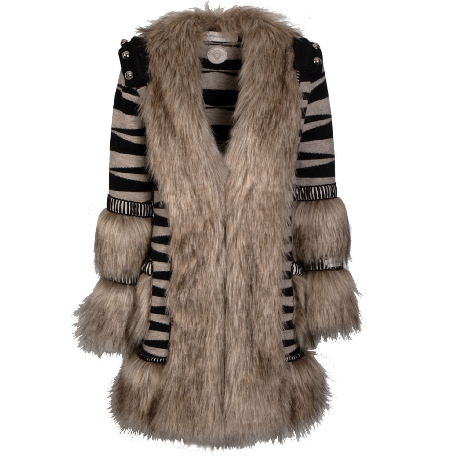 The Extreme Collection – Black And White Merino Wool Faux Fur Coat Timothee